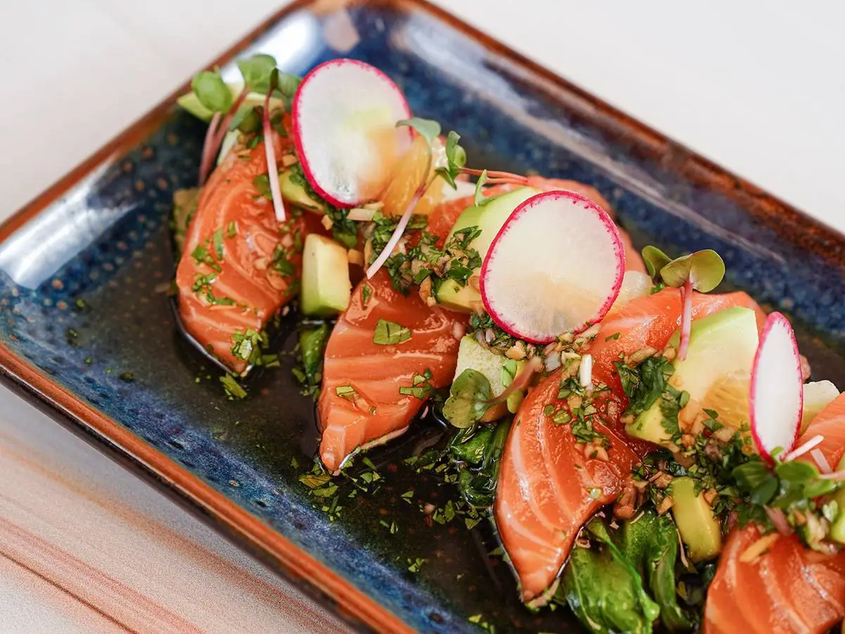 Осьминог, томатная сальса, кинза, перец чили, соль, черный перец, о...