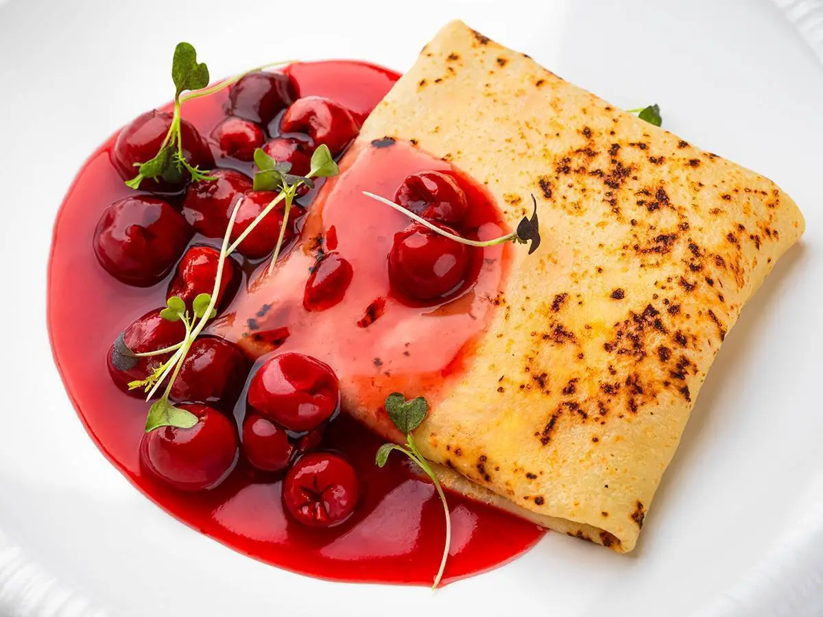 Блины с ванильным кремом и вишней