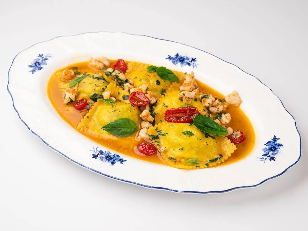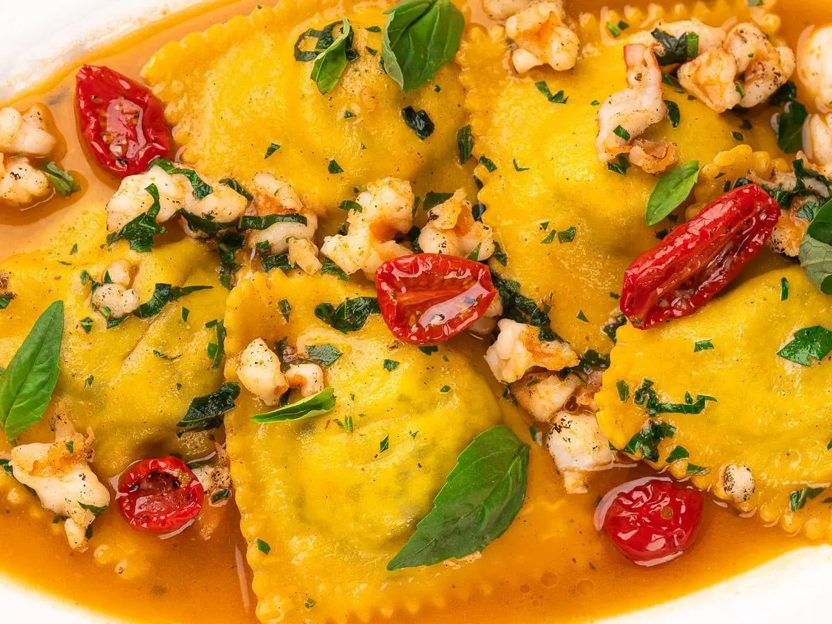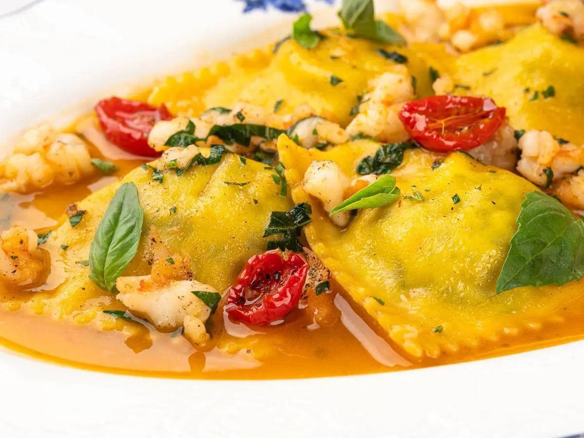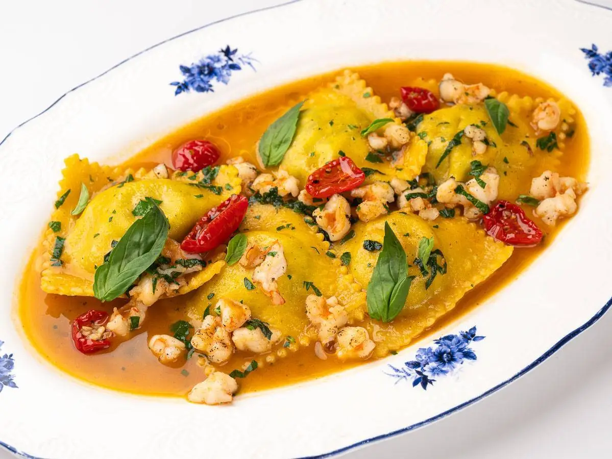 Равиоли с креветками и шпинатом