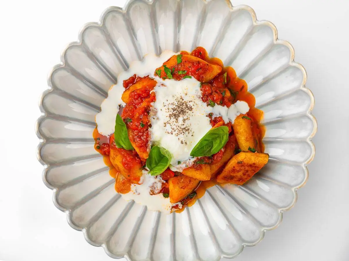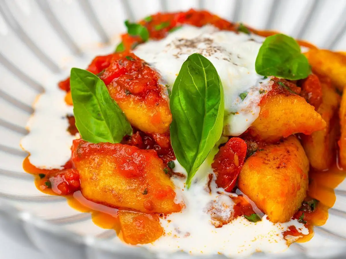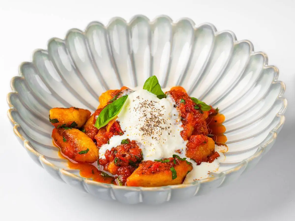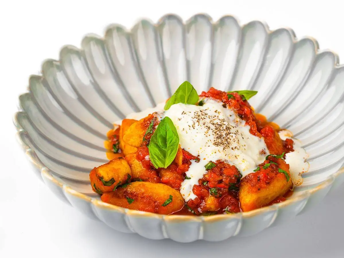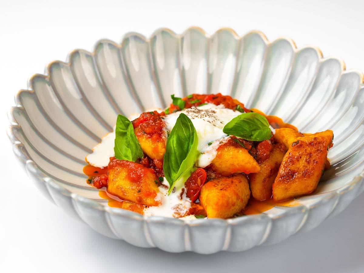Ньокки в соусе аррабиата со страчателлой